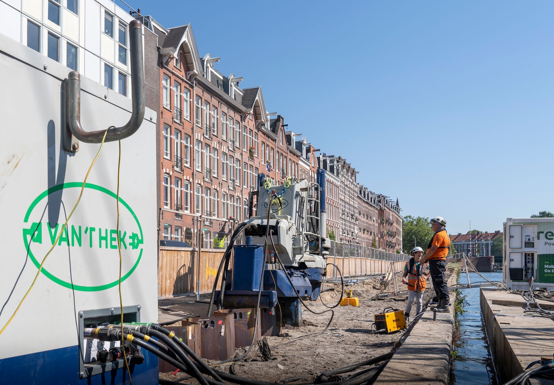 Onze bouwplaatsen worden steeds stiller en schoner. Zo maken we bij voorkeur gebruik van elektrisch aangedreven trilblokken en kranen, en zetten we waar mogelijk Silent Pilers in. Tijdens het project in de Paxhaven in Den Haag hebben we met volledig elektrisch materieel gewerkt. Dit betekende minder CO₂-uitstoot én een aanzienlijke reductie van geluidsoverlast voor de omgeving.